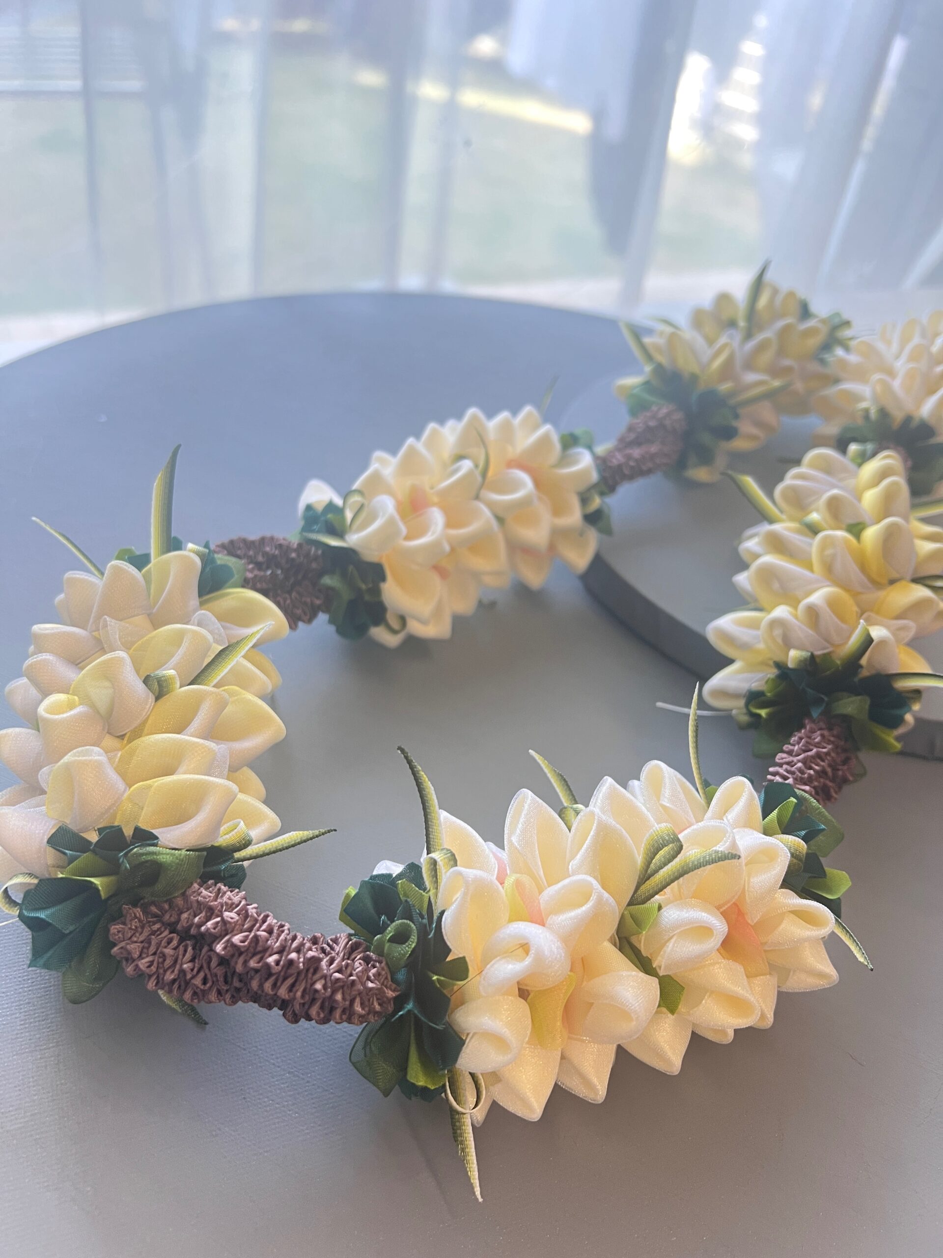 2026.02.03 金木犀・銀木犀のハワイアンリボンレイ|Kinmokusei no Hanadamari Lei ʻAla 金木犀・銀木犀をモチーフにしたハワイアンリボンレイ 9月になると、道を歩くたびに、ふわりと漂う金木……